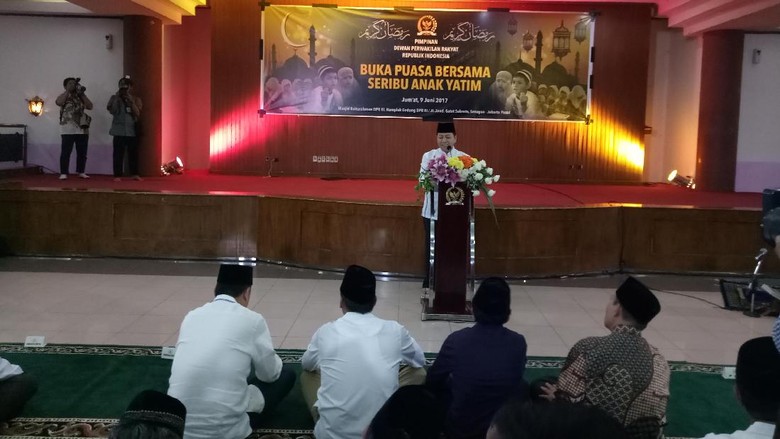 | Foto: Ketua DPR Setya Novanto buka puasa dengan anak yatim. |