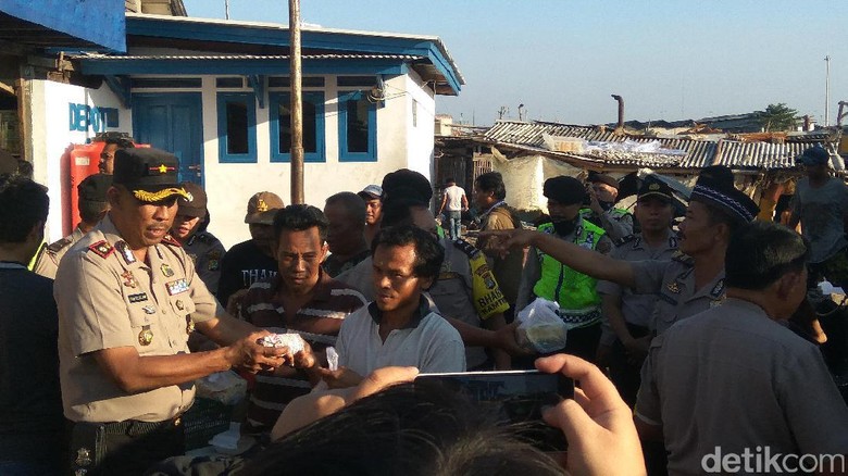 Pantauan detikcom di Pelelangan Ikan Kalibaru, beberapa nelayan tampak antusias saat dibagikan paket makanan untuk berbuka puasa. Selain kepada nelayan polisi juga membagikan paket nasi kepada warga di sekitar pelelangan ikan.